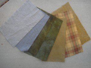 I did some experimental dying on some fat sixteenths of various wools. The two pieces on the left are “as is.” The next two pieces are the same grays dyed with red onion skins and the last three pieces are a couple of grays and a cream plaid that were dyed with stewed pomegranates. Who would think red onions would produce green and pomegranates would produce gold?