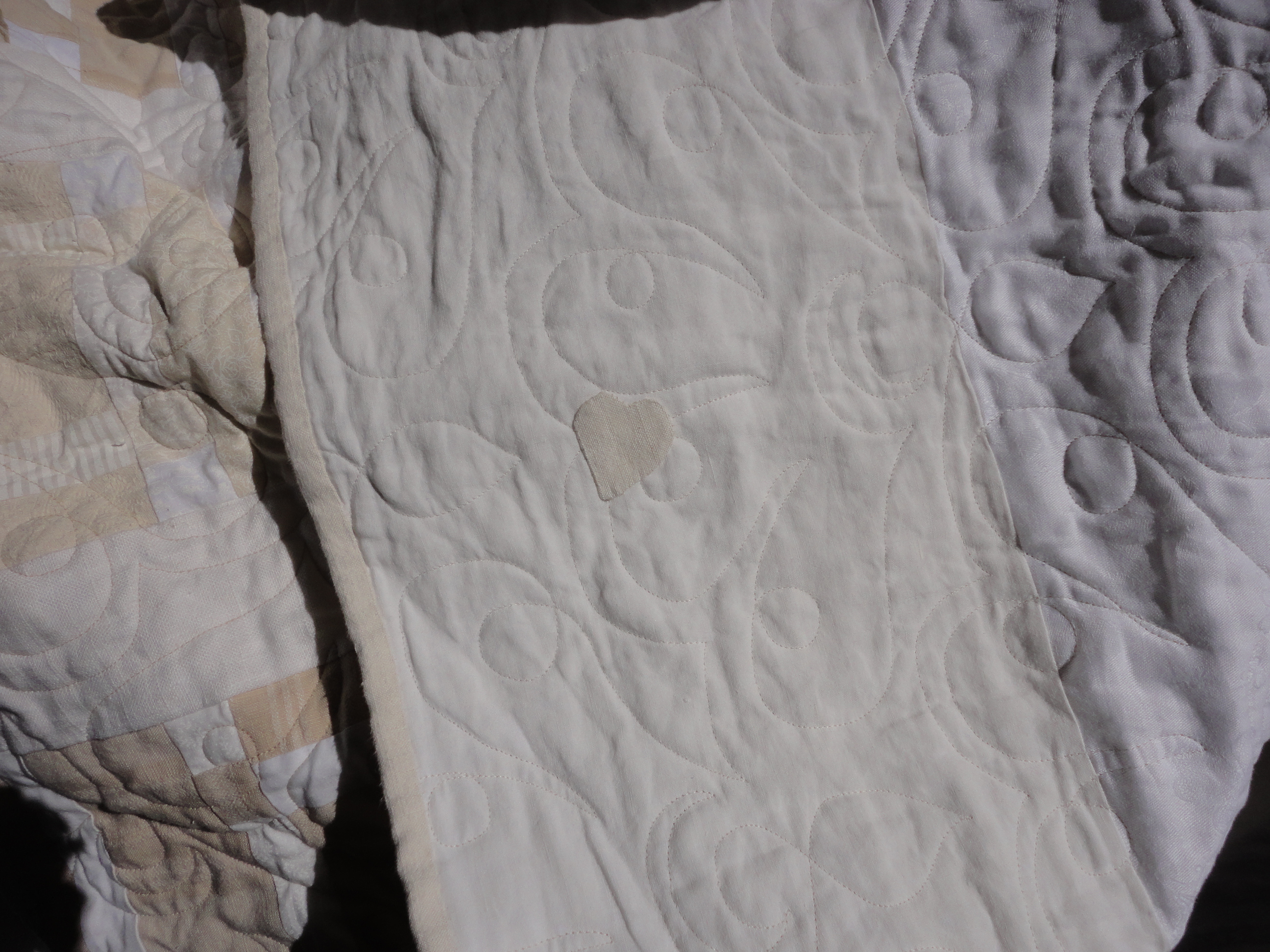 White on white quilt, linen and cotton