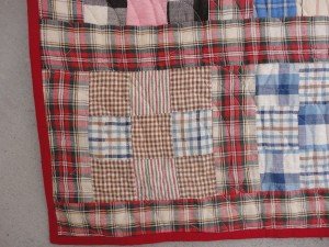 I had this hand pieced plaid 9-patch top for a few years now and decided it was time to quilt it up and make it useful. I love plaid, and I think this is especially charming with the plaid sashing. The hand piecing is outstanding.